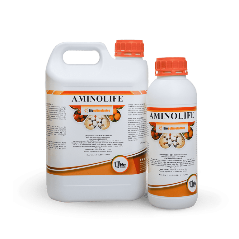 Contiene aminoácidos que al ser absorbidos directamente por la planta evitan a ésta el trabajo de sintetizarlos a partir del Nitrógeno, con lo que pueden elaborar inmediatamente las proteínas que precisan para su mejor desarrollo. Los aminoácidos de AMINOLIFE han demostrado su eficacia en la recuperación de los árboles afectados por granizo, heladas, sequía, etc y se puede utilizar tanto por vía foliar como radicular.