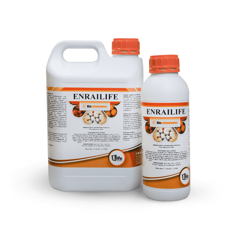 Los aminoácidos de ENRAILIFE son absorbidos directamente por la planta y evitan a ésta el trabajo de sintetizarlos. Este ahorro energético se traduce en una respuesta inmediata de la planta para aprovechar todo su potencial genético. Los aminoácidos suministrados de ENRAILIFE son absorbidos rápidamente por el sistema radicular y transportados a los órganos de mayor actividad.