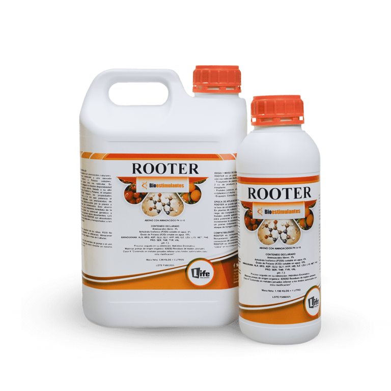 Bioestimulante con aminoácidos naturales, péptidos de bajo peso molecular y una elevada concentración en Fósforo y Potasio solubles, especialmente indicado para uso vía radicular. Su equilibrada composición asegura la máxima disponibilidad para la formación de nuevas raíces. Los aminoácidos de ROOTER son absorbidos directamente por la planta y evitan a ésta el trabajo de sintetizarlos.